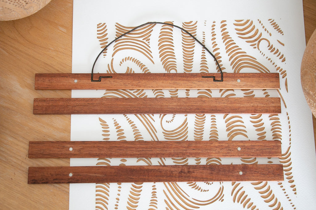 The hangers are made from river-salvaged native Rimu exclusively for us.