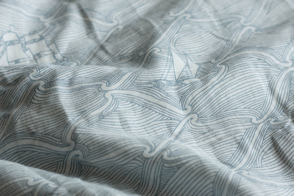 The Pūtai shade is named after sea foam and is a soft grey-blue. This design is also available in dark inky navy.
