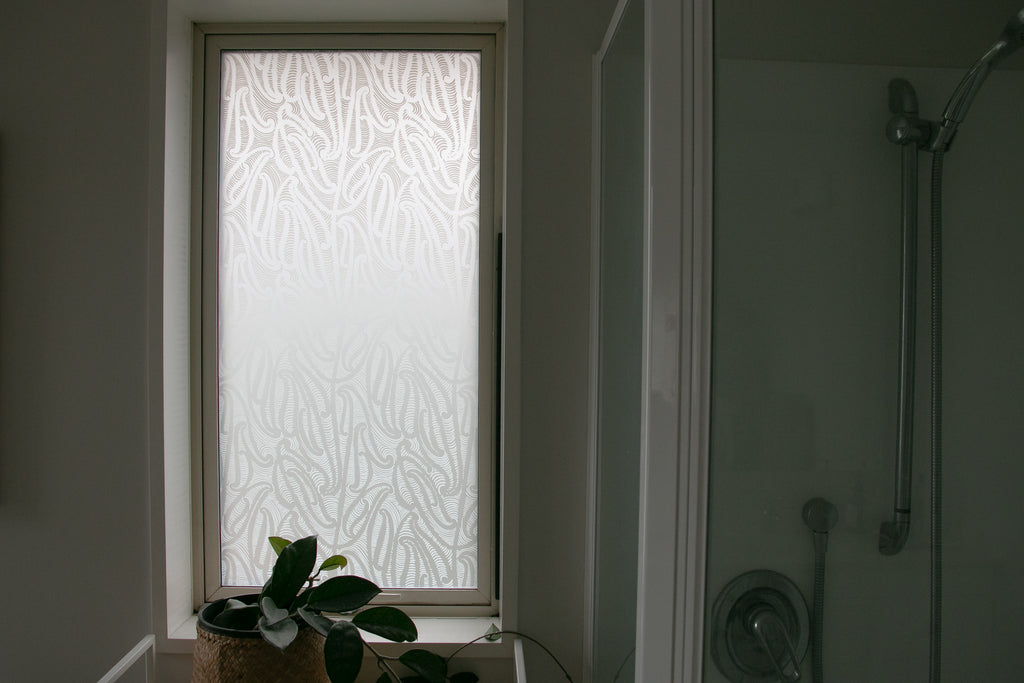 This window film is suitable for bathroom and steamy environments as well as it is well adhered to a clean smooth window.