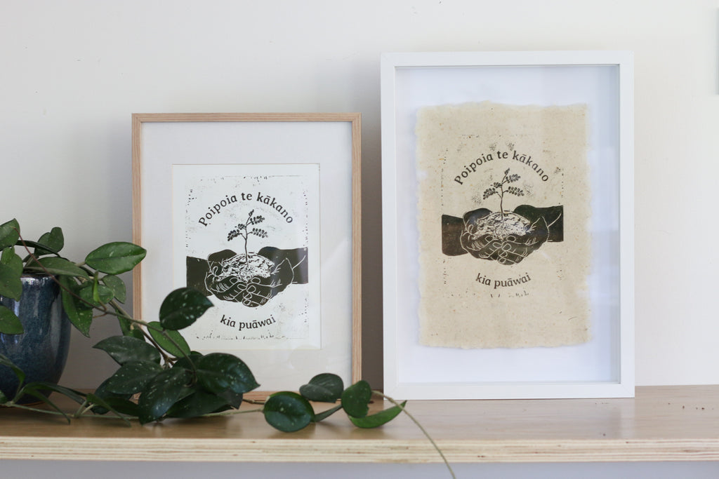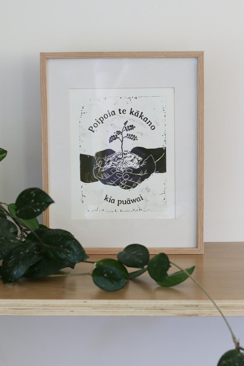 Poipoia te Kākano, kia puāwai Woodblock Print (Unframed)